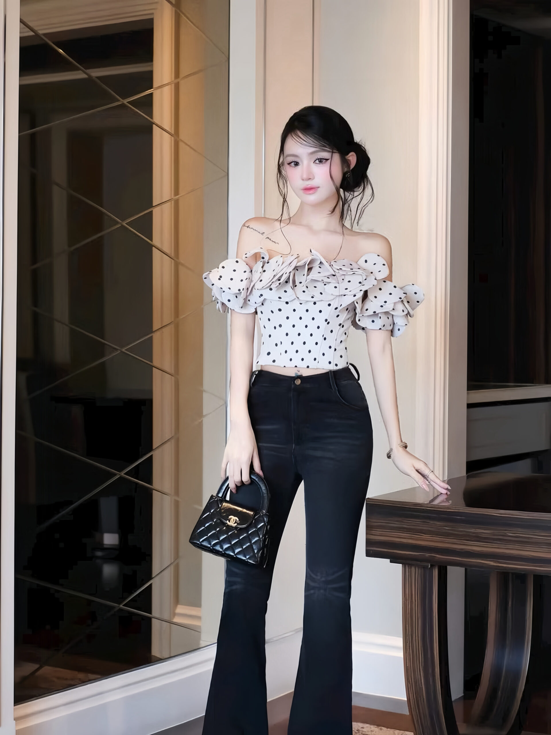 Áo trễ vai chấm bi là một item không thể thiếu trong tủ đồ của những cô nàng sành điệu. Nhất là khi hè về, những mẫu áo trễ vai nữ ngắn tay được thiết kế với dáng ôm hoặc form rộng cổ tròn in hình cá tính, đẹp mắt được sản xuất hàng loạt và nhanh chóng cháy hàng.