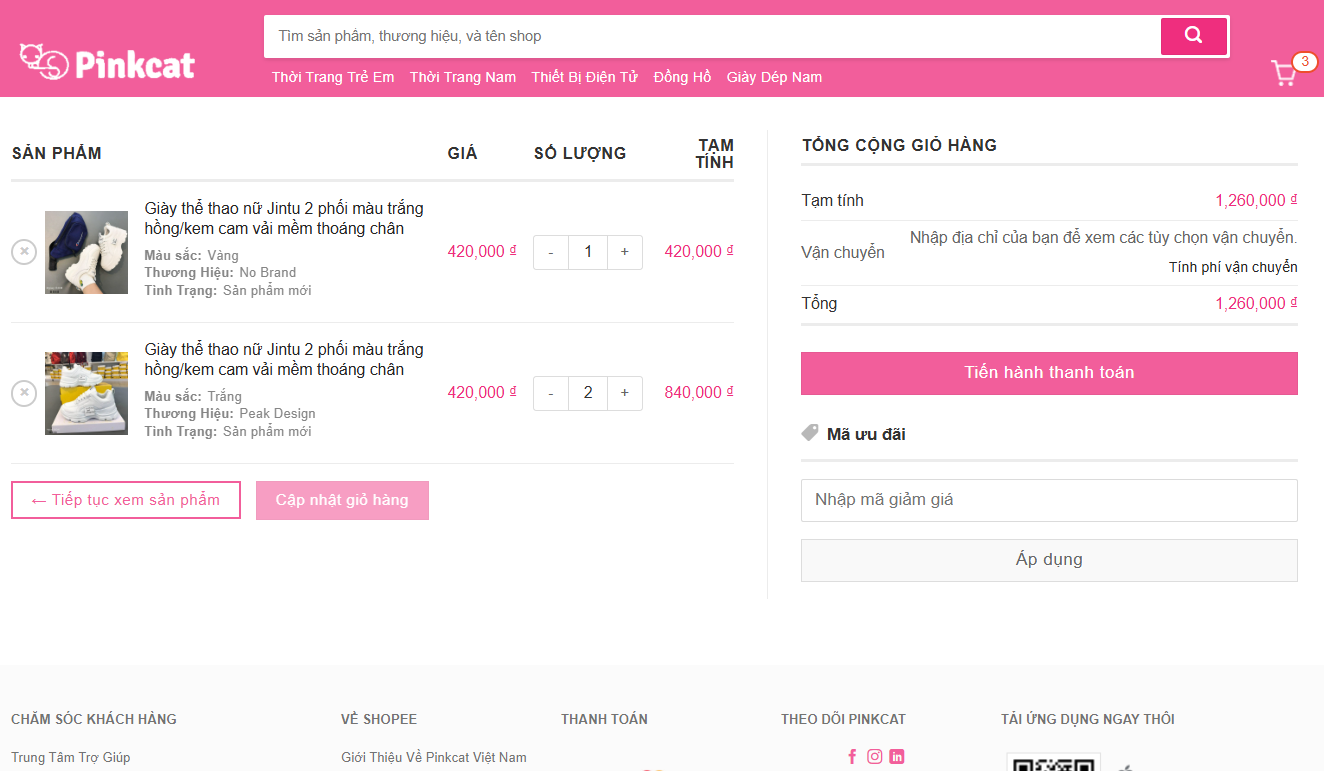 Người dùng có thể đặt mua một hay đồng thời nhiều sản phẩm một cách dễ dàng trên nền tảng web của Pinkcat